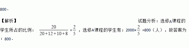 某学校计划开设A,B,C,D四门校本课程供学生选修,规定每个学生必须并且只能选修其中一门,为了了解学生的选修意向,现随机抽取了部分学生进行调查,并将调查结果绘制成如图所示的条形统计图,已知该校学生人数为2000人,由此估计选修A课程的学生有 人.