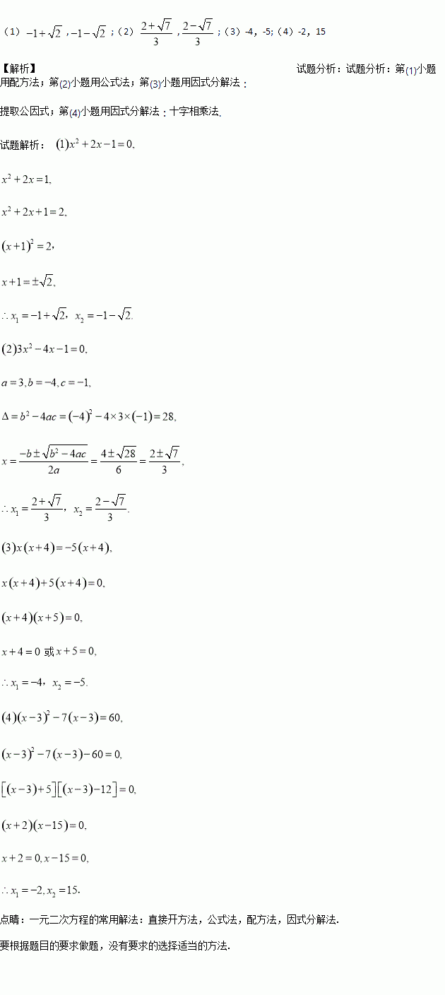 (1);(用配方法解)