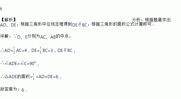 如图,中,,,,D、E分别为AC、AB的中点,连接DE,则的面积是______.