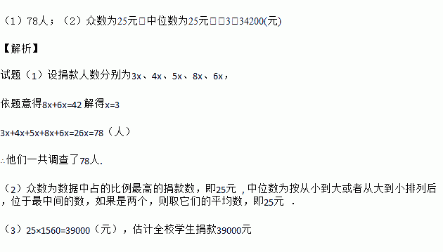 (3)若该校共有1560名学生,估计全校学生捐款多少元.