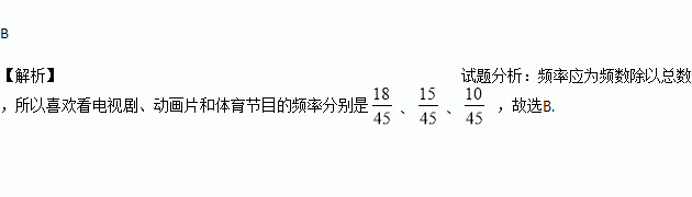 在全班45人中进行了你最喜爱的电视节目的调查活动,喜爱的电视剧有人数为18人,喜爱动画片有人数为15人,喜爱体育节目有人数为10人,则下列说法正确的是( )