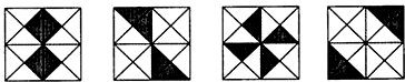 如图,正方形被划分成16个全等的三角形,将其中若干个三角形涂黑,且满足条件:(1)涂黑部分的面积是原正方形面积的