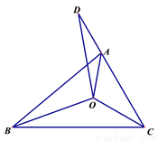 如图,已知△ABC三个内角的平分线交于点O,点D在CA的延长线上,且DC=BC,AD=AO,若,则的度数为____________.