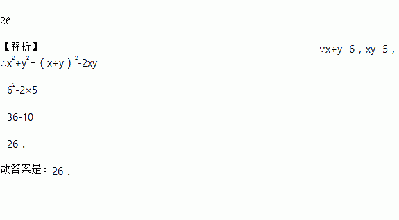 若x+y=6,xy=5,则x2+y2=________.