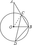 分析:连接OC,由∠AOB=90°,∠A=36°,得∠ABO=90°-36°=54°,而OC=OB,则有∠OBC=∠OCB=54°,∠BOC=180°-54°-54°=72°,利用圆周角定理可得∠BDC=
