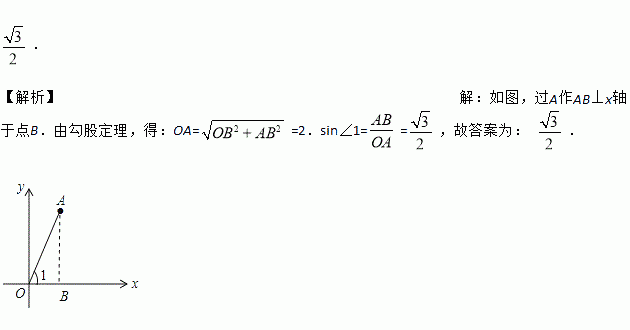 如图,若点A的坐标为(1, ),则sin∠1=______.