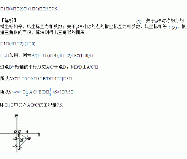 (1)点A的对称点A′的坐标为(1,-5),点B关于x轴的对称点B′的坐标为________,点C关于y轴的对称点C′的坐标为________;