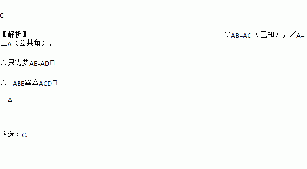 如图,AB=AC,添加下列条件,能用SAS判断△ABE≌△ACD的是( )