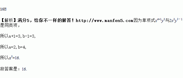 如果单项式xa+1y3与2x3yb﹣1是同类项,那么ab=______.