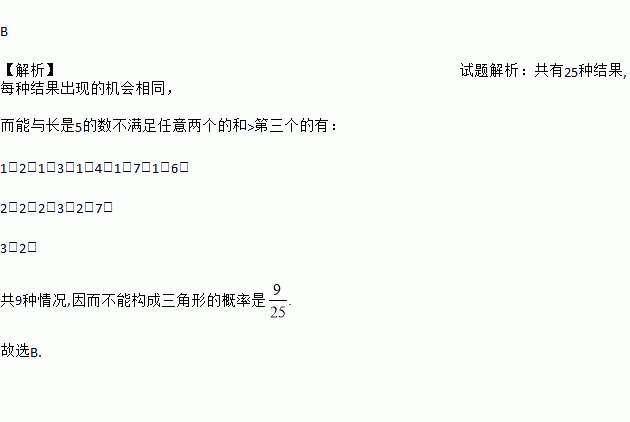 在如图的甲、乙两个转盘中,指针指向每一个数字的机会是均等的.当同时转动两个转盘,停止后指针所指的两个数字表示两条线段的长,如果第三条线段的长为5,那么这三条线段不能构成三角形的概率是【 】