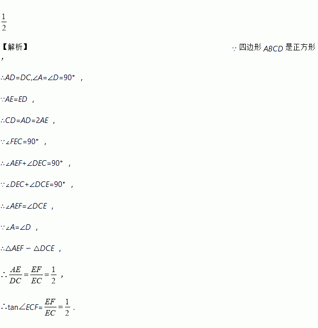 如图,在正方形ABCD中,点E为AD的中点,连接EC,过点E作EF⊥EC,交AB于点F,则tan∠ECF=_____.