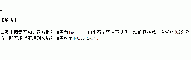 如图,为测量平地上一块不规则区域(图中的阴影部分)的面积,画一个边长为2m的正方形,使不规则区域落在正方形内,现向正方形内随机投掷小石子(假设小石子落在正方形内每一点都是等可能的),经过大量重复投掷试验,发现小石子落在不规则区域的频率稳定在常数0.25附近,由此可估计不规则区域的面积是__m2.