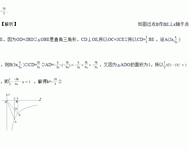 如图,A,B是双曲线上的两点,过A点作AC⊥x轴,交OB于D点,垂足为C.若OD=2BD,△ADO的面积为1,则k的值为_________.