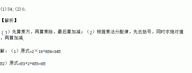 (1)2×(﹣4)2+6﹣(﹣12)÷(﹣3)