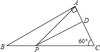 分析:由于△ABC∽△DAP,那么∠APD=∠BCA,易求∠APD=60°;或△ABC∽△DPA,则∠DPA=∠B=30°,