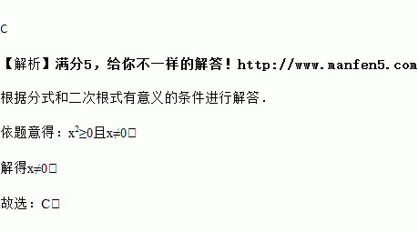 A. x>0 B. x≥0 C. x≠0 D. 任意实数