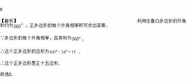 A. 正十二边形 B. 正十五边形 C. 正十八边形 D. 正二十边形