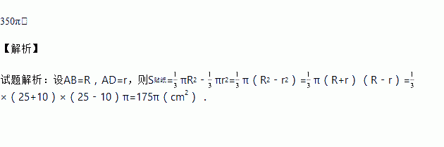 如图,一扇形纸扇完全打开后,外侧两竹条AB和AC的夹角为120°,AB长为25cm,贴纸部分的宽BD为15 cm.若纸扇两面贴纸,则贴纸的面积为____.