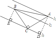 解:如图,过点A作AD⊥l3于D,过点B作BE⊥l3于E,