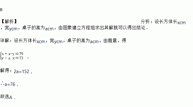 利用两块长方体木块测量一张桌子的高度.首先按图①方式放置,再交换两木块的位置,按图②方式放置.测量的数据如图,则桌子的高度是( )