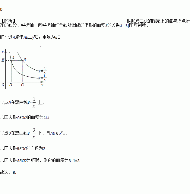 如图,点A在双曲线上,点B在双曲线上,且AB∥x轴,C、D在x轴上,若四边形ABCD为矩形,则它的面积为( ).