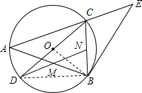 (2)连接BD,由CD为直径,得到∠DBC=90°根据勾股定理得到BD=$\sqrt{C{D}^{2}-B{C}^{2}}$=8,根据平行线的性质得到∠ACD=∠CDN,推出∠CDN=∠BDN,根据三角形角平分线的定理得到$\frac{CD}{BD}=\frac{CN}{BN}=\frac{10}{8}=\frac{5}{4}$,得到BN=$\frac{8}{3}$,根据勾股定理得到DN=$\sqrt{B{D}^{2}+B{N}^{2}}$=$\frac{8\sqrt{10}}{3}$,根据相交弦定理即可得到结论.