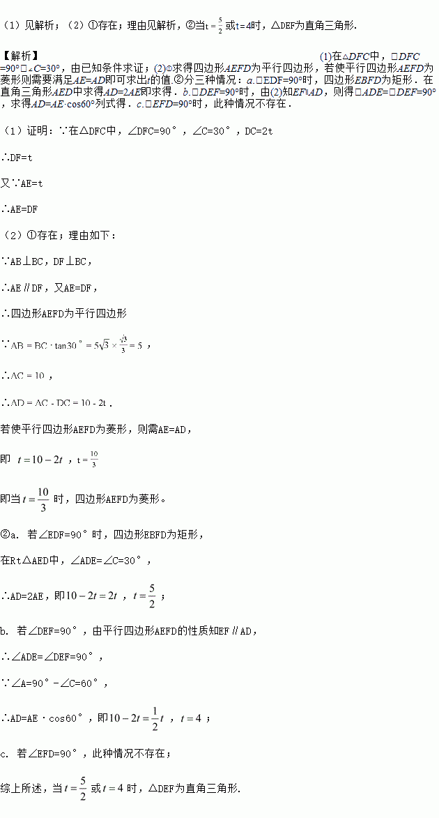 ①是否存在t,使得四边形AEFD为菱形?若存在,求出t的值;若不存在,请说明理由