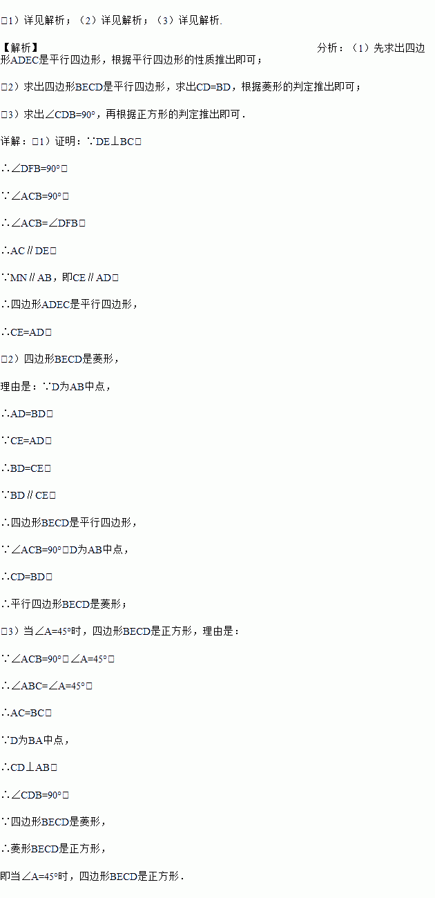 (3)若D为AB中点,则当∠A的大小满足什么条件时,四边形BECD是正方形?请说明你的理由.
