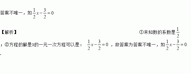 写出满足下列条件的一个一元一次方程:①未知数的系数是;②方程的解是3.这样的方程可以是_______________