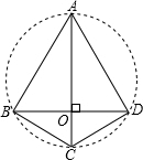 分析:首先根据四边形的性质可证出四边形对角互补,从而得到A、B、C、D四点共圆,再根据90°角所对的弦为直径,证明AC为直径,再根据垂径定理可得