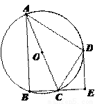 如图,四边形ABCD是⊙O的内接四边形, ,AC为直径, DE⊥BC,垂足为E.