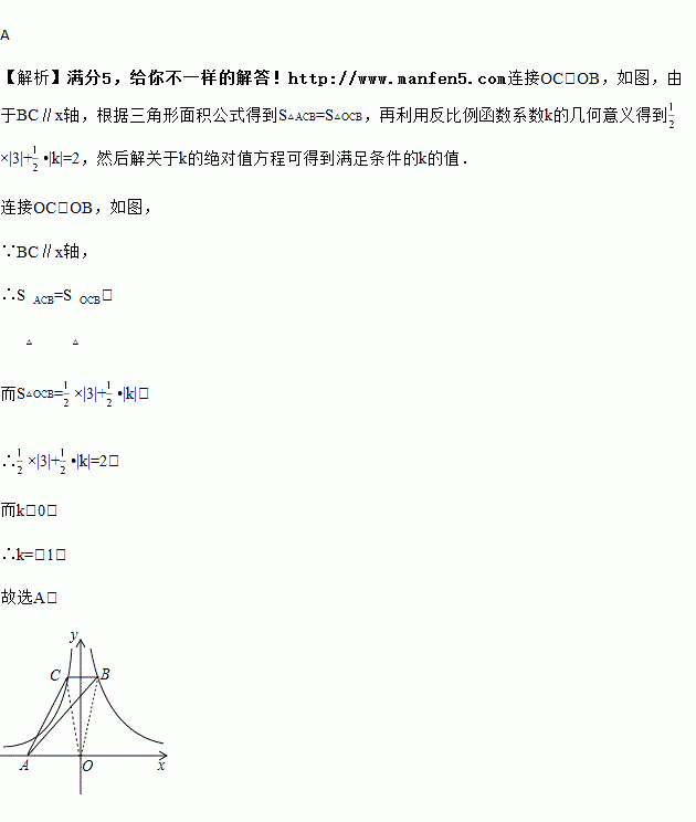 (x<0)的图象于B、C两点,若△ABC的面积为2,则k值为( )