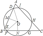 6.分析 过O作ON⊥FG于N,OM⊥DE于M,连接OD、OF,根据垂径定理得出DE=2DM,FG=2FN,根据角平分线性质得出OM=ON,根据HL证Rt△OMD≌Rt△ONF,根据全等得出DM=FN,即可求出DE=FG.