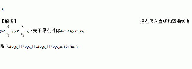 直线y=ax(a>0)与双曲线y=交于A(x1,y1)、B(x2,y2)两点,则4x1y2-3x2y1= __.