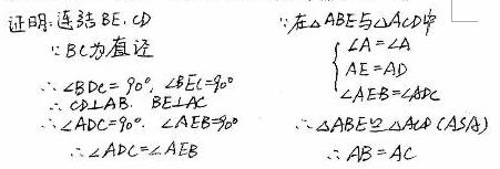如图,在△ABC中,以BC为直径作半圆O,交AB于点D,交AC于点E,AD=AE