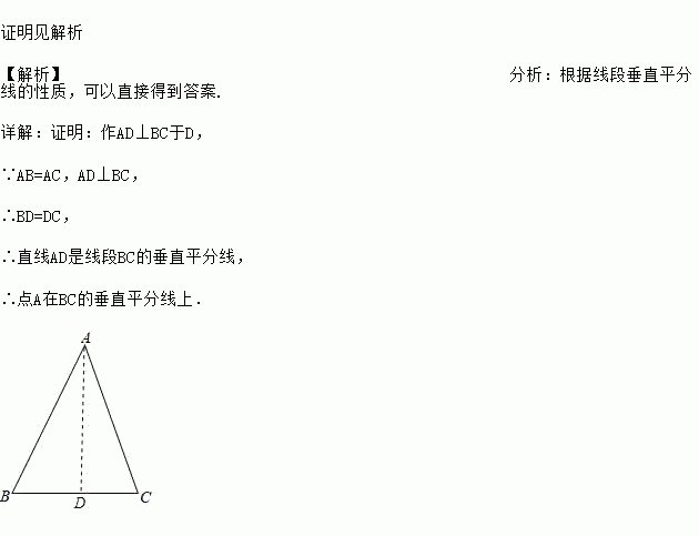 证明定理.与一条线段两个端点距离相等的点,在这条线段的垂直平分线上.