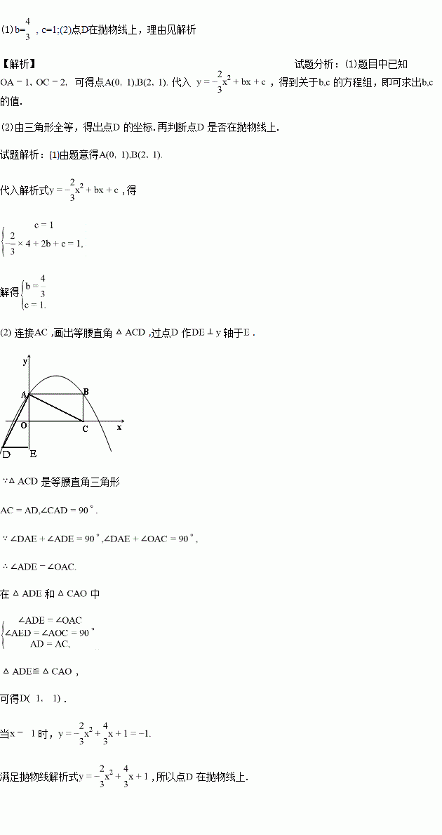 (2)请你连结AC,以AC为直角边,在AC的下方作等腰直角△ACD,且∠DAC=90°,则顶点D是否在抛物线上,请说明理由.