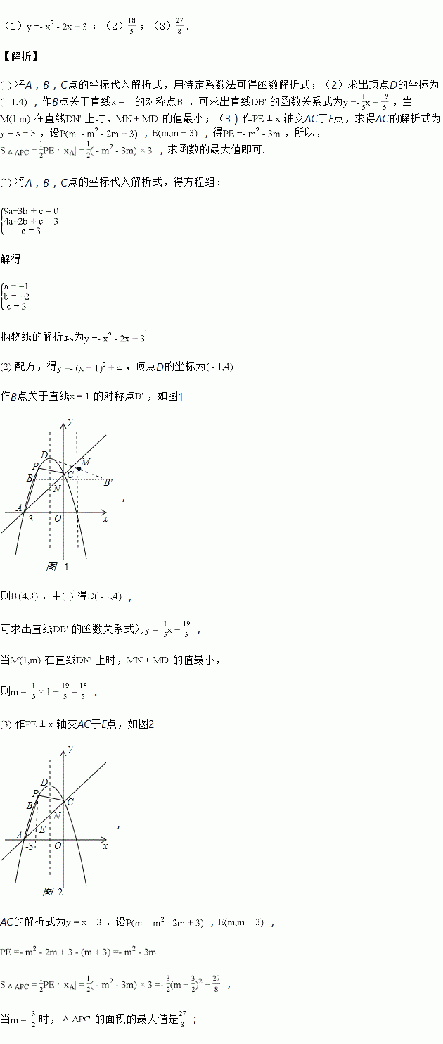 如图,已知抛物线y=ax2+bx+c过点A(﹣3,0),B(﹣2,3),C(0,3),顶点为D.