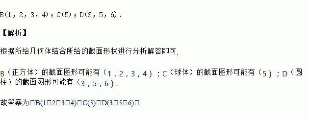 用平面截几何体可得到平面图形,在表示几何体的字母后填上它可截出的平面图形的号码.
