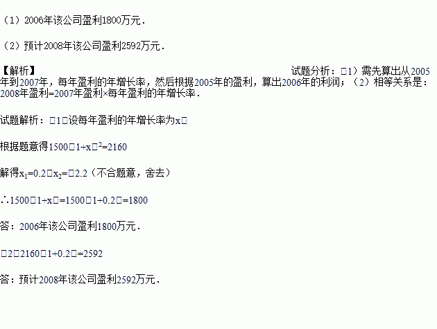 (2)若该公司盈利的年增长率继续保持不变,预计2008年盈利多少万元?