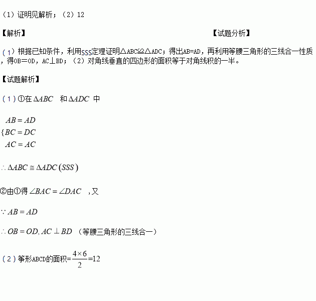 (2)如果AC=6,BD=4,求筝形ABCD的面积.