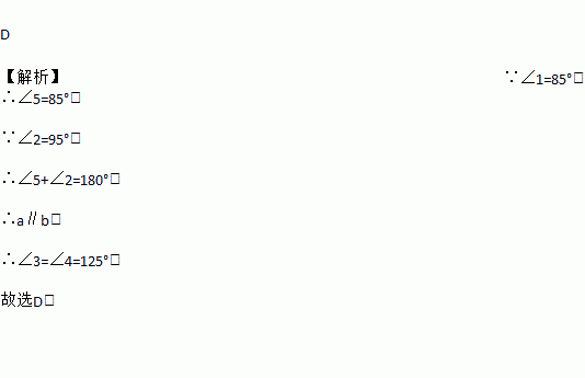 如图,已知∠1=85°,∠2=95°,∠4=125°,则∠3的度数为( )
