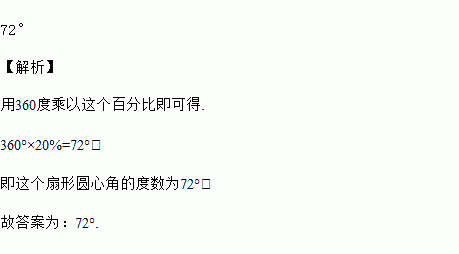 在扇形统计图中,若某个扇形所表示的部分占总体的20%,则这个扇形的圆心角的度数为_____.