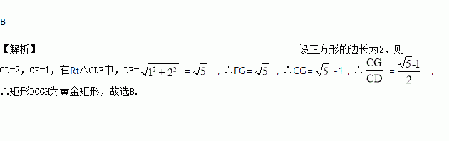 (约为0.618)的矩形叫做黄金矩形。我们可以用这样的方法画出黄金矩形:作正方形ABCD,分别取AD,BC的中点E,F,连接EF;以点F为圆心,以FD为半径画弧,交BC的延长线与点G;作
