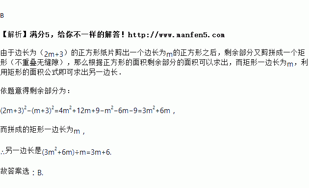 的正方形之后,剩余部分可剪拼成一个长方形,若拼成的长方形一边长为![]()