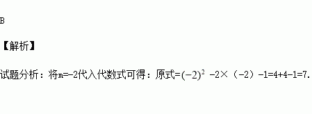 若m=-2,则代数式m2-2m-1的值是( )