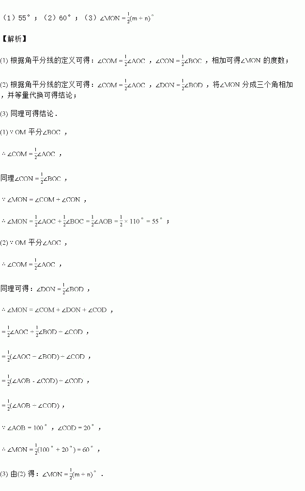 ,其他条件不变,请用含m,n的代数式表示MON的度数不用说理![]()