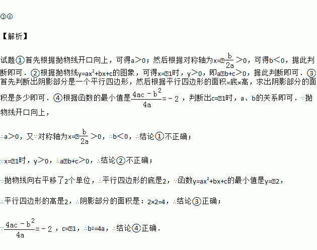 如图,已知抛物线y=ax2+bx+c与x轴交于A、B两点,顶点C的纵坐标为﹣2,现将抛物线向右平移2个单位,得到抛物线y=a1x2+b1x+c1,则下列结论正确的是 .(写出所有正确结论的序号)