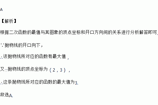 一条开口向下的抛物线的顶点坐标是(2,3),则这条抛物线对应的函数有( )