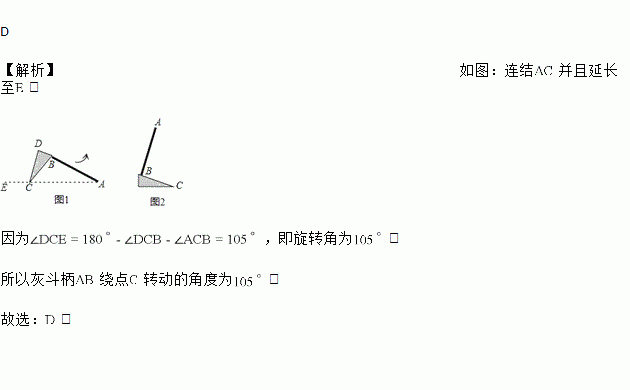 如图,教室里有一只倒地的装垃圾的灰斗,与地面的夹角为,,小贤同学将它绕点旋转一定角度,扶起平放在地面上(如图),则灰斗柄绕点转动的角度为( )